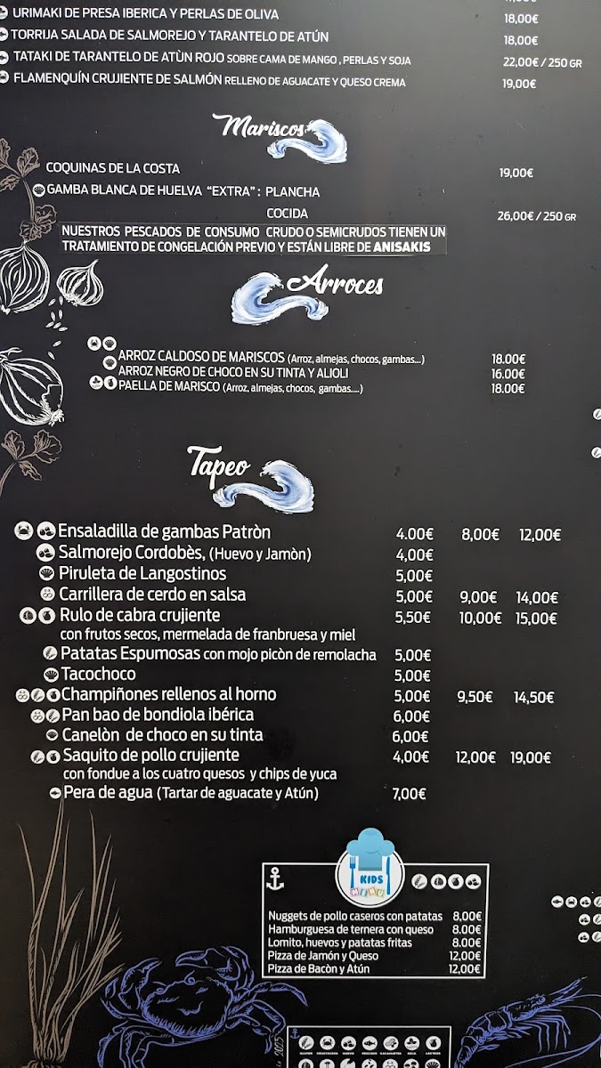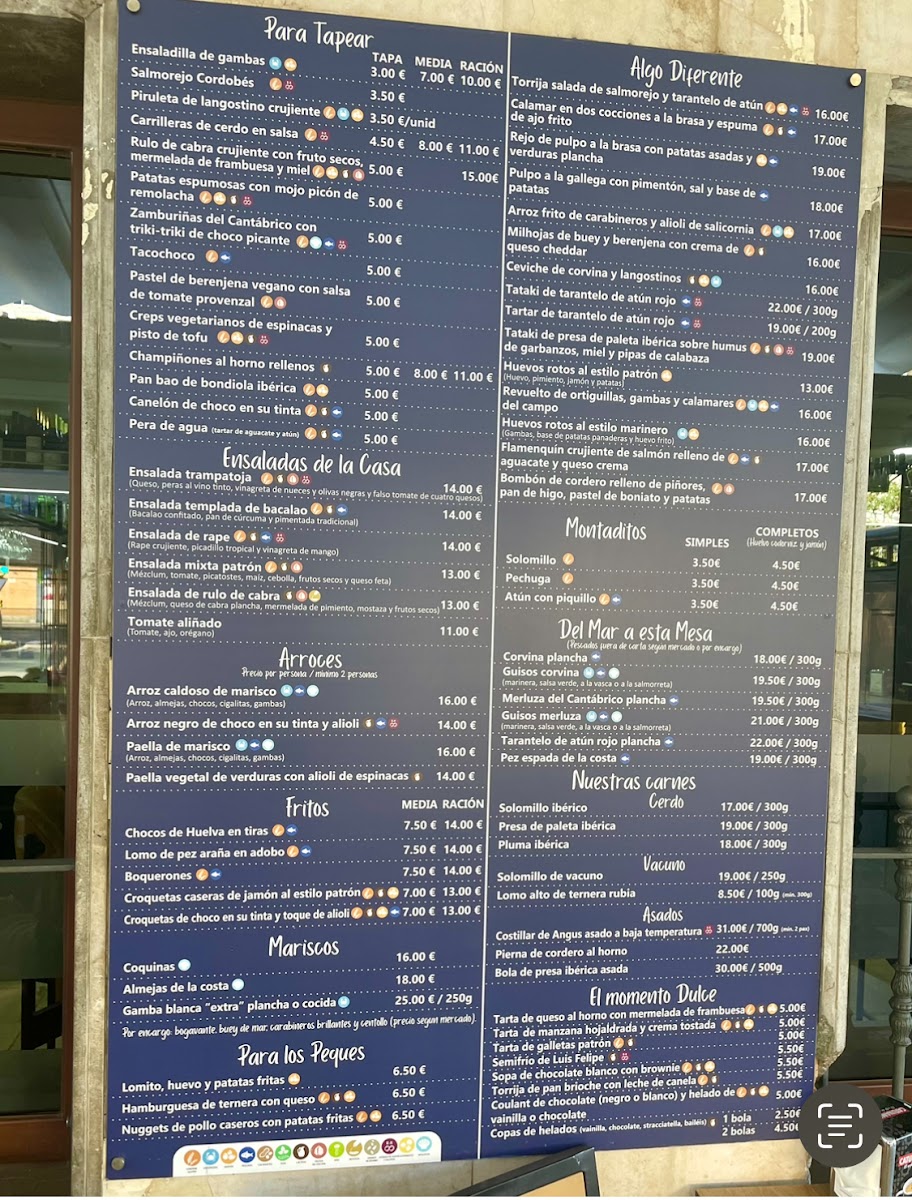 Highlights include approachable Spanish favorites like Pulpo A la Brasa and Salmorejo, alongside heartier selections such as the Costillar de Angus and Arroz Caldoso de Mariscos. Light bites like Patatas Con Espuma de Alioli or a fresh Ensalada de Rape fit effortlessly into the welcoming atmosphere, ideal for savoring a meal with friends or enjoying a quiet moment at the bar.